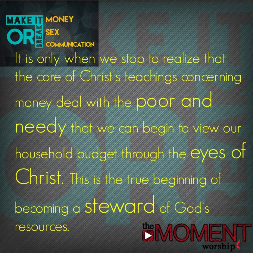 As is regularly the case, a Monday followed that Sunday. I had to go into the office and get my information out for our Moment Monday materials. I had to re-live that jumbled mess of preached Word and decide which scrap I felt could pass its way into a promotional image. I talked about the Sermon on the Mount. I talked about Jesus’ words about caring for the poor and almsgiving. I talked about engaging giving in secret and not for personal glory. I talked about budgeting in relationships. I talked about the warnings of the Minor Prophets to care for the needy in the kingdoms. I talked about the implications of Matthew 25 and that in serving the poor and needy through our giving and our actions we are indeed serving Christ himself. I talked about budgeting in the church. It was too much heading in too many different directions.