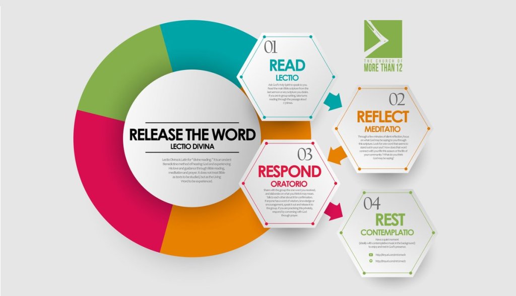 These questions stem from a practice from the 6th Century Church called lectio divina, or “divine reading.” To modernize the ancient meaning, think of 4 R’s in experiencing a passage of scripture: